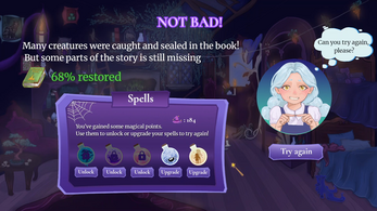- Use Magic Points to unlock new spells between attempts. Always try again!